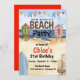 This invitation is for birthday party with a beach theme. You can change the colours of the text. You can also add more letters by clicking customise further.