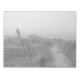 Little path leading to the beach in thick fog. Black and white photography.