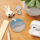 Beach wedding favour keychain features a photograph of beautiful beach. Template text for you to customise with wedding date, bride and groom's names and a thank you message to wedding guests. Discounts are available for bulk orders.