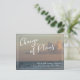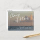 This design features a pretty beach photo; you can replace it with your own, if you'd rather. The front features a graphic header I designed using a casual handwriting, that reads "Change of Plans". Lower, there is a cheerful message you can edit, which declares your news: "We're Still Getting Married! Now, We're Just Not Sure When." Accented with two slim borders, this text appears in white. The reverse side includes template placeholders for your details. Use these fields to add your personal details and change my draught wording to suit your needs and situation.