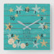 Beach Planks and Starfish Square Wall Clock