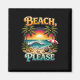 A vibrant tropical sunset scene with palm trees, rolling waves, and sandy shore vibes celebrating carefree beach life.