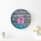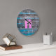 This unique beachy wall clock features pink flip flops adorned with darker pink hearts on a distressed teal blue and grey boardwalk background. The white clock numbers give this wall clock function as well as design! The phrase "Beach Please!" can be easily personalized to say whatever you'd like. If you need help with further customization, please don't hesitate to contact the designer.