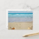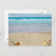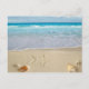 Postcard shown with a photo print of a beautiful beach with shells.