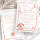 Planning a beach, tropical, or destination wedding? Set the tone with this playful and modern red and white Beach Wedding Invitation Template, featuring original hand-drawn doodles of seashells, waves, and breezy coastal charm. The light wavy red frame adds a soft, relaxed vibe, perfectly complementing the joyful spirit of your seaside celebration.