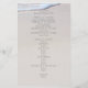 Beach wedding program with beach sand image background. Double sided, affordable flyer paper with text templates on both sides. Script for the names of the bride and groom, and the rest is thin, printed font style. Easily customise section by section. Carefully proofread your text as no one will check it before printing.