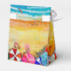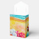 Waves on a sandy beach and sunbathers under colourful umbrellas, these ribbon closure tent style party favour boxes are fun for any summer occasion.