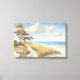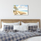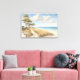 This stretched canvas wall art is shown with a lovely beach scene watercolor art print.