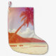 Beach scene, coconut tree, wooden bed. small christmas stocking