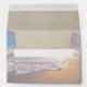 Speciality envelopes with a beach scene and return address optional text. Sunrise over a beach, with waves lapping the shore is the scene that covers 5x7 inch (Size A7) envelopes. Blue script font is used for the return address text on the front. Choose basic or linen paper. A tan coloured graphic lines the inside. Sorry, but individual mailing addresses cannot be added. The design is perfect for beach weddings, special summer events, or for everyday correspondence.