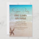Beach scene and starfish surprise party invitations with instant download option. Celebrate an adult's birthday by sending out special beach themed invites. Sand brown text, in modern fonts, is printed over a turquoise sea with little waves lapping the shore. A single sea star, or starfish, is in the bottom corner. Printed cards come with many paper options to upgrade as you wish.