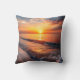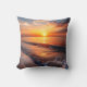 Beach Scene With The Sun Setting Over The Horizon Cushion