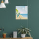 Beach Scene with Umbrella, Palm Trees & Beach Ball Poster