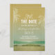 Palm Trees, Beach Waves Sea Wedding Save The Date Cards. Pretty and simple with handwritten fonts can be used a postcard too.
