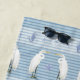 Hand painted in watercolor artwork of a Great White Egret, Seahorse, Sea Turtle, Starfish and seashells are placed over a peaceful, crisp nautical blue and white striped background. Your B & B or family's name and message is easily personalized (or simply erase the text in the template form if you do not need it). Art and graphic design by internationally licensed artist and designer, Audrey Jeanne Roberts ©