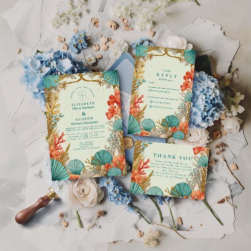 This romantic design draws inspiration from the Mediterranean coast, blending soft seashell details with muted botanicals and a vintage parchment background. Earthy neutrals, blush tones, and coastal textures create an old-world, seaside aesthetic that feels elegant, timeless, and effortlessly refined.