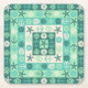 This modern, nautical paper coaster set is done in a quilted block pattern with alternating green and sand-beige squares. This pretty beach-themed decorative, stylised design includes shells, starfish, anchors and sand dollars in light beige and green shades ranging from teal to seafoam. The design has a retro, deco geometric look.