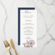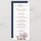 This wedding menu from my Beach Seashells wedding collection features a watercolor seashells design with bride and groom names showcased in handwriting style script, your wedding date, starter courses, entrees and dessert options. The reverse side is solid navy blue. Personalise it with your own names, wedding date and menu options with the easy-to-use design template - just click "personalise" and then type over the sample text where indicated.