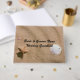 A beautifully presented guest book which came with a lovely gift box for storage. The book was hard back so stayed fresh after being handed around to all our wedding guests. We had lots of compliments about the design which went perfectly with our theme. Perfect, no issues at all with the printing. It arrived on time and came well packaged.