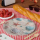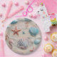 Bring coastal charm to your party with these soft and dreamy beach-themed paper plates! Featuring scattered soft blue and pink shells, starfish, and three peach-coloured seahorses on a gentle wave pattern over creamy pink sand, this design adds a touch of seaside magic to your celebration.