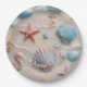Beach Shells, Starfish & Seahorses Pink Sand Party Paper Plate