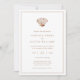 Beach Simple Wedding Invitation. Unique & stylish, this simple modern beach wedding invitation features beautiful hand-painted seashells, coral, and starfish in earth tone neutrals. The text is tan, and the background is white. The back includes a whimsical seashell pattern. Find matching items in the Watercolor Seashell Beach Wedding Collection.