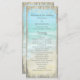 Make your special day perfect with these rustic beach wedding program cards. Aqua blue ocean waves lapping on the beach, framed with rustic weathered wood, make a perfect coastal scene. String lights decorate the top. The text templates make it easy to fill in your own particular details.