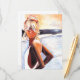 Unique painted image by established Artist of blond beach girl Card. Great for any occasion.