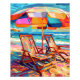 The photo print highlights the vibrant colours and natural beauty of the beach environment. The turquoise hues of the water, the golden tones of the sand, and the lush greenery of the surrounding landscape evoke a sense of tranquillity and vacation vibes.