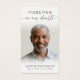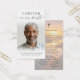 Keep the memory of a loved one close with this custom personalized prayer card featuring one cherished photo, the sentiment FOREVER IN OUR HEARTS, name and dates on the front and an editable poem or your remembrance message, meaningful quote or bible verse accented with a simple cross overlaid on a muted photo of a beach with footprints at sunset you may keep or replace with an image representative of your dearly departed. The sample shows the poem "Footprints in the Sand." With its simple yet elegant classic design and elegant script typography, it makes a meaningful keepsake to share at a funeral, memorial service or Celebration of Life and offers comfort and a lasting tribute for family and friends. Its small and portable size of 3.5x2" (wallet-sized) makes it convenient for loved ones to carry it with them as a reminder of your loved one’s life and spirit. Personalization makes each card unique.