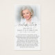 Keep the memory of a loved one close with this custom image personalized prayer card featuring a full-bleed photo or image on one side and a cherished photo of them on the other side along with the title CELEBRATING THE LIFE OF NAME and dates and editable text you can change to a heartfelt message, remembrance tribute, prayer, bible verse or poem. The sample features a beach sunset photo you can replace with their photo or an image that best represents your loved one. With its simple yet elegant classic design and modern script typography, it makes a meaningful keepsake to share at a funeral, memorial service or Celebration of Life or send with thank notes and offers comfort and a lasting tribute for family and friends. Its small and portable size of 3.5x2" (wallet-sized) makes it convenient for loved ones to carry it with them as a reminder of your loved one’s life and spirit. Personalization makes each card unique.