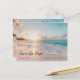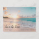 Personalise this beautiful beach sunset save the date postcard to announce your upcoming wedding to friends and family!
