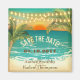 Palm trees and string lights frame the ocean sunset and sandy shore on this lovely beach wedding magnet. Customise the modern, stylish text.