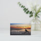 Scenic beach yoga class business cards designed with a beautiful coastal sunset in the background and a yoga instructor in silhouette on the shoreline with a simple layout you can customize online.