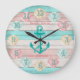 Beach Teal and Coral Seashells& Anchor Large Clock