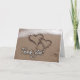 Thank you in white script font against a sandy beach with two hearts drawn in the sand. Perfect for the beach wedding couple for their thank you notes.