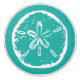 Beach theme sand dollar shell door and drawer pull knobs or handles. Nautical / Tropical design with turquoise blue / sea green background colour. Customisable background colour. Sanddollar icon. Make your own exotic style interior. Fun DIY accessories for home and office. Great for beautiful seaside / coastal kitchen, bathroom, bedroom cabinets, nursery, baby room etc.