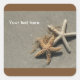 Beautiful beach nature sticker labels in a scenic image with two starfish on the sand and text template you van customise online. Designed for a beach themed event, party, or use them as wedding thank you stickers.