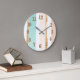 Wall clock in beach tones of turquoise, sand, rose gold, white. Great for home, cottage or as a gift.