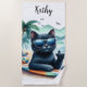 Beach Time Cool Black Cat Personalised Towel