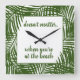 Beach Time Modern Green Palm Leaf Pattern Square Wall Clock