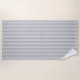 This beach towel is shown in a grey and white stripes design.