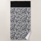 This beach towel is shown in a wild black and white zebra animal print design.