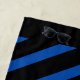 This beach towel is shown in a Black background with bold colour stripes in Royal Blue.