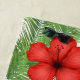 This beach towel is shown in pretty tropical flowers and flamingo design.