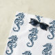 This beach towel is shown in a artistic sea horse print.