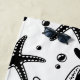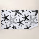 This beach towel is shown in a lovely black and white starfish print.