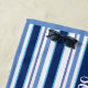 Bold in Blues, this beach towel shown with bold combination of stripes on white background in hues of cornflower blue, periwinkle blue and sapphire blue. Text in centre reads "somewhere on the Beach". Customise this item or buy as designed.