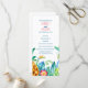beach wedding programs with watercolor pineapple, teal palm leaves and tropical flowers
