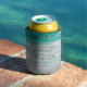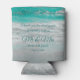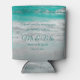 Coastal wedding turquoise white summer tropical beach themed reception favours. Nautical ocean waves thank you beer can cooler. Beautiful, chic, trendy, modern, cool, elegant. Image copyright Marg Seregelyi Photography.
